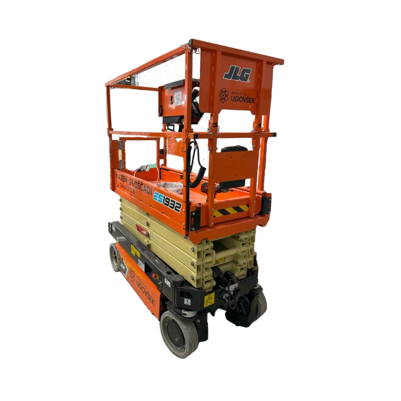 • škarjaste dvižne ploščadi, različnih delovnih višin (do 14 m, nosilnost 450 kg)